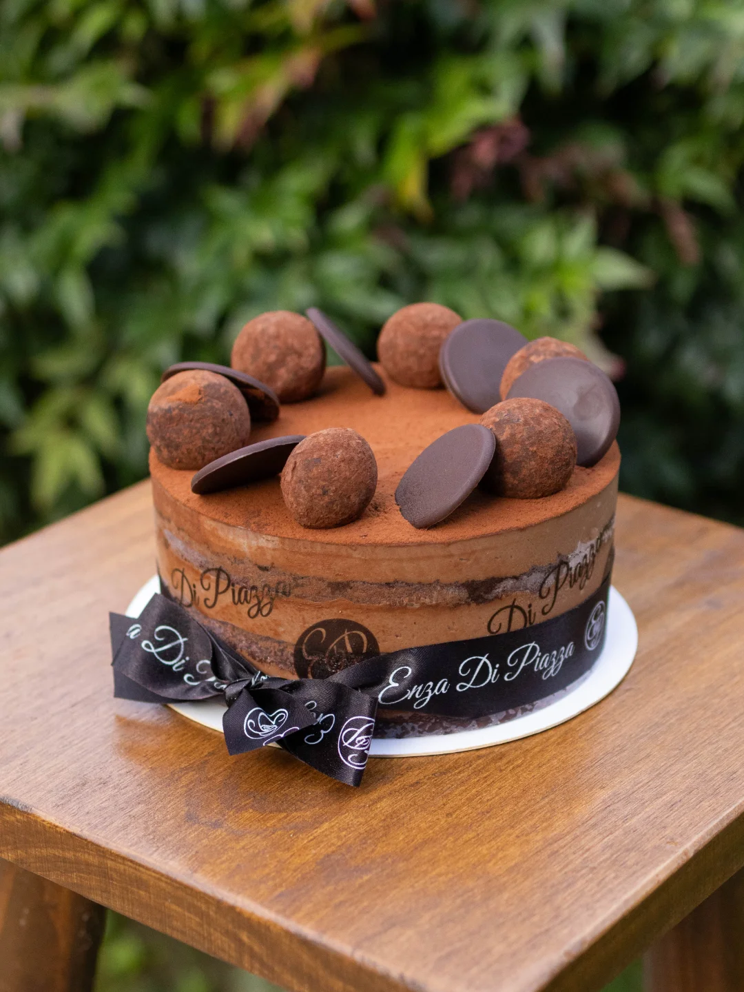 Bizcocho de chocolate húmedo, intercalado con capas de mousse de chocolate.